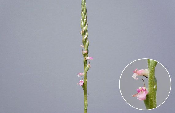 芝生のネジバナ(赤花)が開花しました。昨年と比べて2日早い開花です。と言いつつ、いつもと違うしょぼくれた見栄えです。花は3~4mmの小さな存在ですが、画像を拡大してつぶさに観察すると、苞葉の先端や花弁の各所が黄色く変色しています。潅水不足も否定できない事実ですが、それは花芽が姿を見せる前の話です。ツボミ発生前のストレスがこんな形で現れるというのは、急には納得し難い現象ですが、そうは言いつつ後に続く本隊の10数株にも同様のダメージが認められれば無理にでも納得しなくてはいけません。来週になりそうな芝生の群落の開花本番に大注目です。