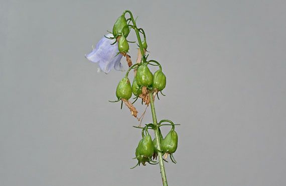 ハクサンシャジンが咲き始めて半月余りが経過し、そろそろ幕引きの時を迎えます。残るツボミも先端を残すのみとなり、週明け頃には幕は下りてしまいそうです。但し、これはポット植えのものについてであって、露地に植えたものは少し事情が違います。露地株は成長が幾分遅れていて、一部が今から咲き始めるか、という状態です。この理由は、種蒔きポットの中で成長が早いものを選択してポットに植替え、残る成長の遅れたものは露地に植え替えたという事情によるものです。 さて、花が終われば次は「実」はどうか、という流れになります。この品種は風や昆虫による受粉の他に自己受粉もできるのか、ほぼ100%の確率で「実」を結んでいます。実際にこの中に「種子」が入っているかどうかは不明ですが、円形に行儀よく並んだ「実」は、なかなか品があって好感が持てます。