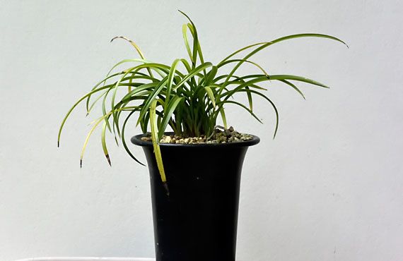 時期を外したシュンランの手入れもこれで最後、というところまで漕ぎ着けました。上画像がその1鉢ですが、2年間放置したため限界越えの過密状態を呈しています。今回はこの集合体から、新子がバランスよく分かれるように分割すると共に、老化の著しいバルブを切除するのが主要な作業です。 葉っぱを掴んで引っ張ればスポッと抜けてくれる様ならベストなのですが、そうは問屋が卸しません。地上部と同様に、地中の根も激増してしまい、ポットの内壁に押し付けているため、抜き上げにはかなり手間取りました。その後株の分割にかかるのですが、老化株は予想外に少なく、残存株は3分割する結果となりました。その内2組を独立したポットに植え付けたのが下画像です。新子の季節も一巡してしまい、ほぼ出尽くした様で、左のポットには3芽、右のポットには4芽の新子が配分しています(円内)。3分割した内の残りは、大型ポットに寄せ植えする形で1年ほど過ごさせた後、優良株選別を行うことになります。