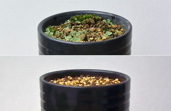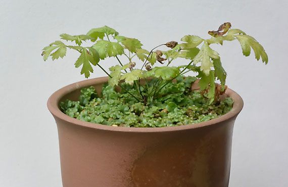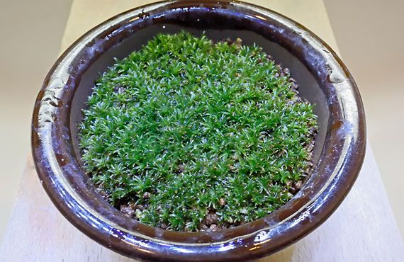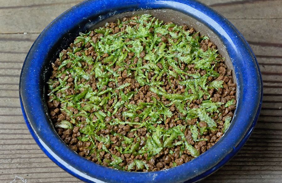この2号ポットに植え付けて1年近く経ったスナゴケです。取り立てて珍しい品種という訳ではなく、街中の極端に乾燥しないところなら普通に見かけるものです。この春頃までは下地の微粒赤玉土が丸見えになるほどコケの密度はスケスケでしたが、ここに来てやっと下地を覆い隠すところまで密度を上げて来ました。 と言っても、コケの層の厚さは精々2~3mmといったところで、目標とするポットの端面まで伸びるまでに、あとどれ程かかることか。因みに目標とするコケの層の厚さは1cmほど、ポット上で緩やかなドーム形状を描く状態なのですが、このコケの特性がそうした用途に向いているかどうか、といった基本的な裏付け情報は皆無です。