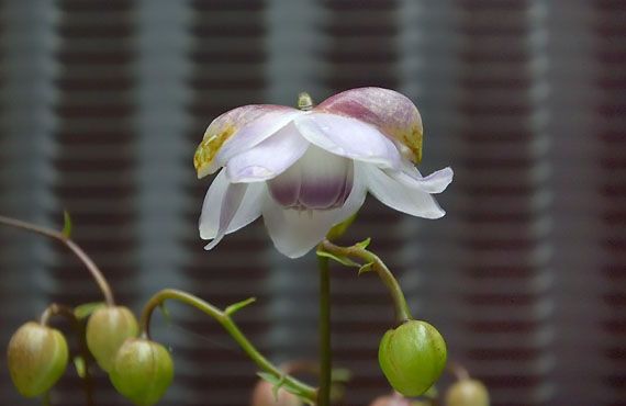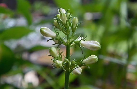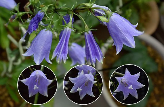 ハクサンシャジン(白山沙参)が開花してしまいました。「してしまいました」などと、随分突き放した言い方ですが、予想を悉く外してしまい、穴があったら入りたいほどの恥ずかしさが言わせた文言とご理解頂ければ幸甚です。 釣鐘型の花の大きさは、高さ1cmほど、胴の直径7~8mmといったところです。3~6cm間隔の節ごとに4~10輪のツボミが放射状に付いています。花期の間に茎は更に伸びながらツボミも増えそうな勢いを見せています。 僅か2日前に取り上げた時には、こんなに早く開花しようとは思えませんでした。しかも花色さえも変えての上の所業です。それもこれも、初めて自分で栽培して、定点観測したことで得られた知見です。結局、東北地方の1000~1500mに自生する個体と比べて、花期は1ヶ月半も繰り上がったことになりました。次のシーズンには、もう少し的を得た見通しをご披露できるかと思います。