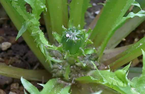 白花タンポポが動き始めました。昨年の今頃は、既に1番花が開花していたことを思うと、半端ではない遅れ様です。昨年と今年で何か大きな変化があったか思い返してみるのですが、夏の暑さは今年の方が少々暑かったかという程度です。気温以外では今年は建屋の大規模修繕で工事用足場とそれを覆う保護ネットで日差しは殆ど届いていません。大きな変動要素と言えば、これくらいですが、日射量と開花の相関関係はよく分かっていません。 それにしても株の根元付近の砂の堆積は酷いものです。この点は工事用足場と保護ネットが主因であることは間違いありません。10階越え付近でネットに溜まった水滴が地面に落ちると、泥はねの先端は高さ1mまで飛散します。横方向はそれを超えることは容易に想像が付きます。こうした事情で今シーズンの白花タンポポは、いい条件の開花風景は期待できそうにありません。
