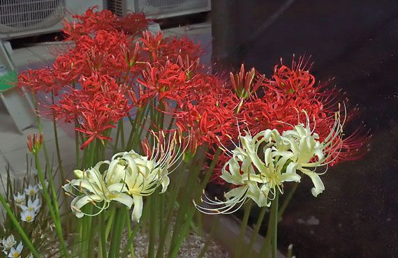リコリス・ラジアータ、平たく言えばヒガンバナが開花しました。昨年と比べて3日遅れの開花です。この程度の早咲き、遅咲きに目くじらを立てることはなかろうに、と思し召しの向きもあろうかと思いますが、ことこのヒガンバナに関してはそうしたくなる事情がありまして ..... そもそもリコリス群8品種の栽培に手を染めた起源は、紅白揃って咲き乱れる様子に憧れてのことでした。ところが色々な品種を調達して、いざ咲き始めてみるとそれぞれの開花時期が微妙に、或いは大幅にずれていて、揃い踏みするものには中々行き着きませんでした。長い時間を費やして、お彼岸を過ぎる頃になれば、どこでも見られる赤花品と、ほぼ同時期に咲く白花品を見つけ出してきました。ただ、同じ遺伝子に立脚するものではないため、どちらかがコンディションを崩せば、開花時期の重なりは短くも長くもなってしまいます。そんな事情で、毎年開花時期の重なりの最大化という一点に関心を寄せてこの時期を迎えるのが慣例になってしまいました。昨年は同日開花という理想的なパフォーマンスを見せてくれたのですが、今年は相方の白は9日も早く咲いてしまいました。赤花は多分こう思っているに違いありません。「この浮気者が・・・・」