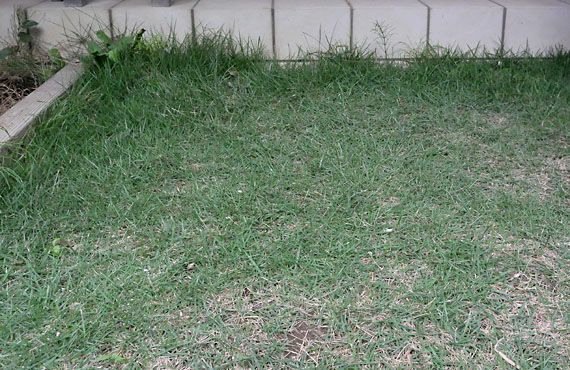 建屋の大規模修繕工事が始まって1ヶ月が経過しました。この間、小庭やベランダに広く分散していた花鉢は狭い範囲に固めて積み重ねたり、屋内に収容したりして、工事対象エリアから退避させました。芝生エリアの半分強は足場のために占拠され、更には保護ネットで日射をほぼ断たれてしまいました。日射の遮断は芝にとってはかなりの痛手ではないかと推測していますが、チラチラ覗き見る限りでは現時点で枯れたり弱ったりといった実害は生じていない様です。ただ、この遮断の期間が長期化する様なら障害も否定し切れません。 そんな中で屋内と屋外を往来するために、足場に穿った芝生への通路部分が、この1ヶ月余り手入れ放棄で伸び放題になっていました。この伸び方が余りに見苦しいので、工事の合間を見てちょっとだけ刈り払ってみました。広さは1m×1.2mほどのエリアです。20分ほどの作業でしたが、少しだけ人の生活の痕跡を刻めた気分になりました。