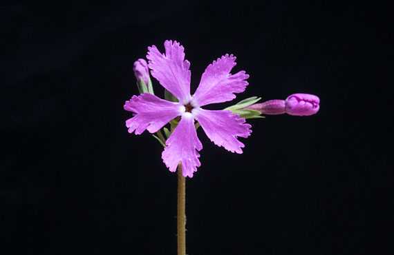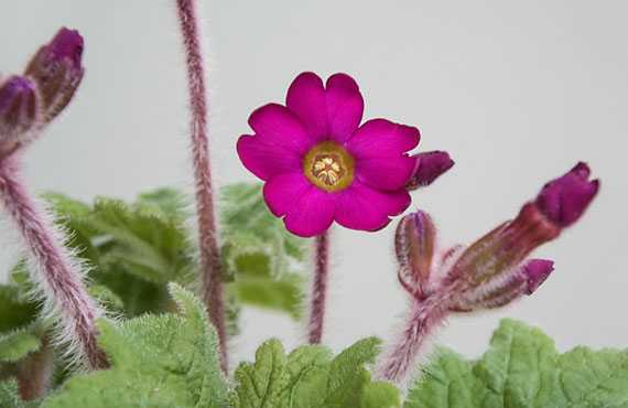 日本サクラソウの2番手、「白鷲」が開花しました。昨年と比べて23日早い開花です。花の色合いは2日前に紹介した「鹿島」とよく似ていますが、花弁のフギレが有るか無いかが大きな違いです。 撮影に当たっては花茎が20cmを超えており、葉っぱと花を1画面に収めようとすると、花が小さ過ぎて様子も分からなくなってしまうため、今回は花だけをクローズアップしました。また、背景が少々ドぎついのは、いつも使う黒や白、グレーでは花の諧調が浮いたり、沈んだりで表情が捉えられないためこんな組み合わせを選ぶことになってしまいました。結局この1個体の撮影に1時間以上を費やしたことになります。