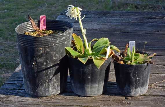 春の花苗リクルート第2弾に出掛けて来ました。今回の行き先は信楽です。残念ながら本命中の本命として狙っていたコマクサはまだ入荷しておらず、2番手候補とリストに上がっていなかったもの、合計3点を連れ帰りました。上画像がそれですが、左から2番手候補だった四川アツモリソウ、続いて白花ショウジョウバカマ、シライトソウです。いずれも3年前まで栽培していた品種ですが、昨年までに全滅してしまいそれを補充するものです。 四川アツモリソウは、店主によると株の地力がかなり衰弱しており、定着が保証し切れないということで、6割引きにしてくれました。そんな経緯で、定着や夏越しはかなり難しそうですが、上手く行けば儲け物です。褌を締め直して頑張ってみます。