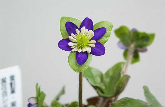 雪割草2番手が開花しました。無銘の二段咲品で、我が家では「無銘⑥」と命名して個体識別している、紫花白シベの品種です。シベの開き具合は、昨日紹介した「無銘②」より進んでおり、花としては最終形に近い容貌です。花弁の色の濃さと言い、シベの開き具合と言い、今年の1番花の出来映えはなかなかのものです。強いて難癖をつけるとすれば、萼片の大きさに対して、花弁が小さいところぐらいでしょうか。萼片と花弁は大きさで対等ぐらいがベスト・・・とワタクシは思っているのですが、この点は異なる見解の人もいるかもしれません。