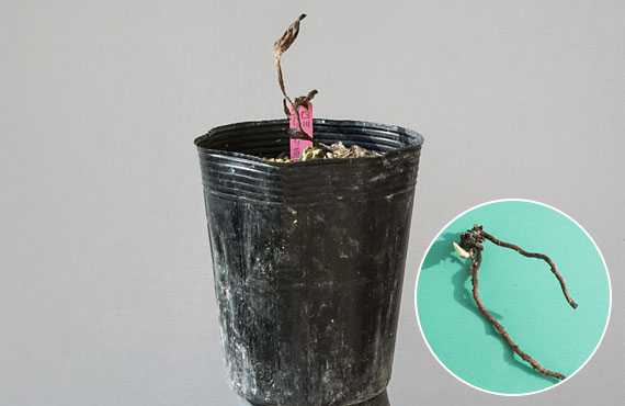 茫々と伸び放題に伸びたイカリソウ「楊貴妃」のポットです。そろそろ新芽が出始める時期ですが、その前に枯れた茎や葉を散髪しておこうということになりました。 地上だけに留まらず地下の方もかなり枝分かれしている模様で、茎はポット全面に分散して立ち上がっています。絡み合う様に伸びた茎を1本1本切り詰めて、丸坊主状態にしたのが下画像です。切り払って初めて、芽出しが始まっているのが確認できました。円内がその新芽で、太さは4mmほど、長さはL字型に曲がった先端部分で1cmほどです。ここからまず茎と葉が立ち上がり、その後花柄とツボミが顔を出し始めます。