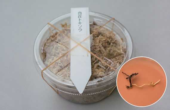 昨日紹介したサワランと同様に、半年余り低温保存して来た白花トキソウも取り出してみました。円内がその様子ですが、見た目には収納前と殆ど変化はありません。問題は芽出しの能力が温存されているかどうかですが、そこを見極める眼力はないので、このまま定植に取り掛かります。 新居は3号陶鉢です。昨日のサワランで使用したのと同じ用土に植え付けます。下画像が植え付けを済ませた様子です。小さいポットだけに乾燥への耐久性は劣ります。夏場の高温と乾燥に対する監視は怠ることができません。というより、その前にまず芽を出して貰わなくては何も始まりません。向う半月から1ヶ月、期待と不安の日々を送ることになりそうです。
