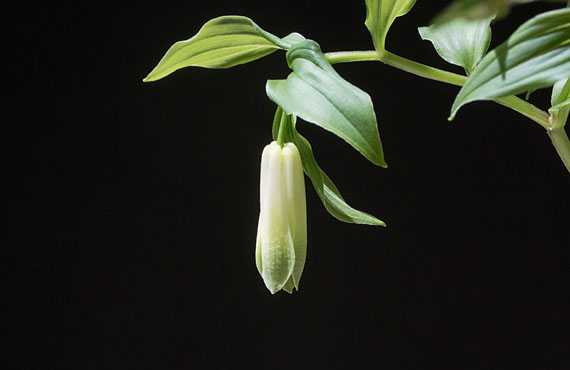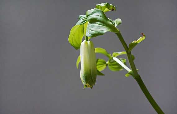 ホウチャクソウ(宝鐸草)が開花しました。昨年と比べて10日早い開花です。芽出しが始まる前の段階、新芽がまだ地中にあった頃、強い冷え込みを受けてオデコに凍傷を負ってしまった様で、頭を地上に出した時点で、新芽の先端はクシャクシャでした。いずれ自然に治癒するだろうと軽く見ていたのですが、花の季節を迎えても状況は変わっていません。普通ならツボミは花茎の中段に付くのですが、今年は茎の上段に付いてしまいました。つまり成長点にかなりの痛手を負ったものと思われます。恐らく今年の夏はこのままの格好で送ることになりそうです。