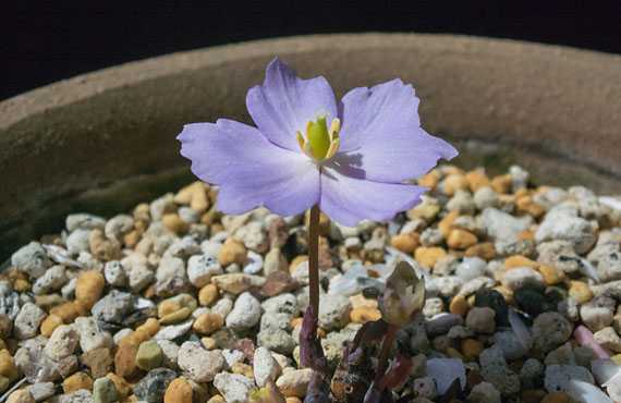 タッタソウ(立田草)が開花しました。昨年と比べて12日遅れての開花です。昨日も書き込みましたが、開花日が早くても遅くても、半端ではない数字が付いて回ります。これにいちいち反応していては、残り少ない寿命に悪い影響が出そうです。 とは言え、100%スルーという訳にもいかないので、少しだけ反応しておきます。昨年この品種は僅かに1輪だけしか花を咲かせませんでした。それが1年間で株の地力が充実したのか、今年は準備中のものも含めると5輪は咲きそうです。「よく頑張った!! 」と褒めてやりたい場面ですが、そうとばかり言っていられません。ご覧の通り、今年の花は花柄が3cmほどしかなく、甚だ短足です。こちらが昨年の開花の様子ですが、葉っぱが出揃った状態で、花柄をしっかり伸ばした上で咲いています。今年は?というと、葉っぱは全く出ていません。不毛の砂漠に花一輪を差したような眺めです。遅れてもいいから、葉っぱは絶対に出して貰わなくてはいけません。