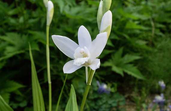 白花シランが開花しました。昨年と比べて6日早い開花ですが、この程度なら誤差の範囲と見做して差し支えない幅です。昨年建屋の大規模修繕に伴い秋の手入れができなかったことが影響したか、花芽は少なく僅か2芽に留まってしまいました。この秋には、密度の適正化など大ナタを振るう手入れが避けられません。 一昨年、それまで露地に植えていたものを全て撤収し、ポットに植え替えました。露地の頃には濃厚な肥料分を享受して、草丈は最大70cmに及ぶこともありました。ポットに植え替えた後は、増殖力が密度上昇を招くと共に、相対的に手薄な肥料分に挟撃される形で図体の小型化が進み、今年の草丈は最大でも30cmに留まっています。この点は思惑通りで、草花としての”可愛さ”や”可憐さ”を取り戻した様に感じます。