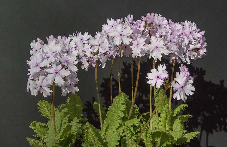 昨日取り上げたシコクカッコソウと並んで、こちら日本サクラソウの「鹿島」もクライマックスを迎えました。花のボリュームで評価すれば、文句なくこの品種史上最高の豊作です。こうなった理由は、昨夏から先月末まで建屋の大規模修繕が行われたことで、昨年の秋の手入れができず、2年間の増殖分がこのポットに集積している訳で、過密の度合いは度を過ぎたものになっています。植替えを秋まで待っていては、地中の”押し競饅頭”で敗退した個体が地上に押し出されるものも出るかもしれません。・・・などと言ってはみたものの、結局は秋まで見送ることになる可能性大です。いやはや面目ないことで ....