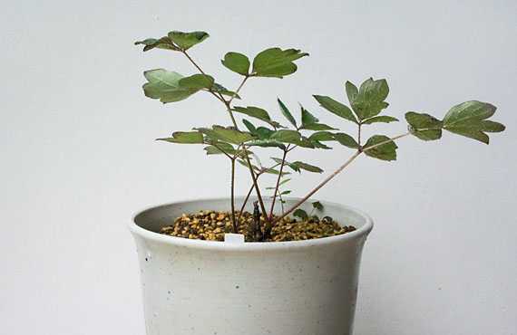 この5年ほど作落ちが続いている白花重弁ヤマシャクヤクですが、原因は株の生育不良ではないかと思う様になりました。幹の分化がこれに追い打ちをかけている様で、養分を食い合って益々成長を阻害している様です。剪定の適期や方法にうとく、ズルズルと措置が遅れています。上画像はそうした劣等生の一つで、2芽が牽制し合う様にこじんまりとして、太る気配が見えません。ということで、時期は甚だ悪そうですが実験の意味を込めて、あわよくば株分け、悪くとも片方を切除することにしました。 根の周りを掘り下げてみると、地中は健康そうな白いヒゲ根が縦横に走っていました。2芽の分岐点付近は少しくびれていて、これなら分割もできそうです。ヒゲ根の分量のバランスが取れていて、これなら・・・ということで株分けを実行することにしました。その内のヒゲ根が幾分多そうな方は元のポットで埋め戻し、残る一つを秋までの仮住まいの3.5号プラ鉢に植え付けました(下画像)。この状態で強い日差しは毒になりそうで、秋まで屋内で養生させることにします。
