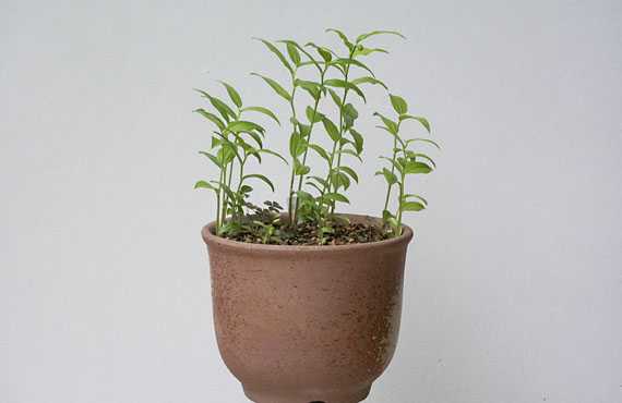昨日リクルートして来た赤花セッコクの「雷山」を早速定植です。用意した新居は3.5号陶鉢です。流通用プラ鉢からの抜き上げは、株元を掴んで軽く引っ張ると簡単に抜けました。培地はミズゴケ100%でしたが、新居ではこのミズゴケに加えて微粒赤玉土と粉砕ミズゴケを混合した用土も併用します。 途中は省略しますが、引越しを済ませた様子が上の画像です。植え替えていて気が付いたのですが、丈が1cmあるかないかの子株がいくつか見つかりました。いきなり画像の株のサイズに成長することはないでしょうが、いずれはこのサイズに追いつき、賑わいに参戦することになります。そうなる前に・・・と言っても秋になるかと思いますが、株立ちを2~3分割したいと思っています。その内の1つは赤花品と白花品を混植したいものです。