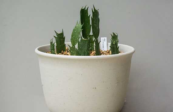 10年ほど前、実が生る「月下美人」というのを栽培したことがありました。これに実を生らせるには、近縁の異なる品種が必要だそうで、今回取り上げる「満月美人」とのセット商品を購入しました。ところが肝心の「月下美人」の方は数年で逝ってしまい、残された「満月美人」も水遣りの不手際で芳しくない生育状況に陥ってしまいました。 相方を失って、実を採るという目的は実現不可能となってしまいましたが、せめて花ぐらいは咲かせてみよう、ということで、株の再生からやり直すことにしました。新株は差し芽で再生することにします。画像がその様子で、1ヶ月ほどで発根するかと思います。開花適齢まで2~3年はかかるかと思いますが、今度は水遣りには細心の注意を払い、結果を残すつもりで取り組んでみます。