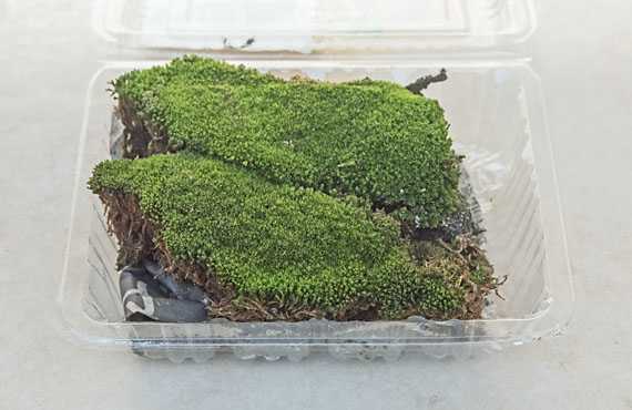 某所のJA直売所で花のコーナーにふと目をやると、ポリ容器に行儀よく収まったコケが目に入りました。種類は1種類だけでしたが、きれいな平面に整った表面が何ともきれいで、ついつい買ってしまいました。コケに大金を注ぎ込むのもシャクなので、一番安価なものを選んでしまいましたが、”価格相応”ということで、真ん中で2つに分割されていました。 帰宅して早速ポットに植え付けました。用意したポットは2号陶鉢です。2つに割れたコケの塊を繋ぎ合わせて、直径が概ね6cmになる様に切り抜き、仮根付近を切り剥がして厚さ1cmほどに整形します。これを微粒の赤玉土を張ったポットに乗せ、ポットの端面よりコケ表面がやや低くなるように調整した様子がこちらです。周囲にできる隙間にもコケの切れ端を詰めて、極端な傷が目に付かない様に調整しています。今は目立たなくなる様整形していますが、その内に傷は消えて行く筈です。また、今の時点ではこのコケの名称や、どんな場所を好むか・・等々の情報は皆無ですが、追々調べを進めて行くことにします。