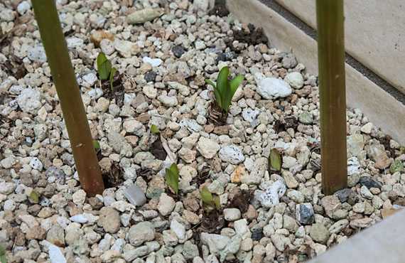 次第に気温も下がって来て、本格的な秋を感じさせる昨今です。そんな中でトキソウが続々と新芽を出し続けて管理人を心配させています。 この品種は6/末に調達したもので、速攻で定植して1ヶ月を経過した頃から活発に新芽を出し始めました。8月末までにトータル10芽を送り出しました。9月に入って気温が落ち着きを見せ始めてもこの傾向は止まらず、画像の3芽が顔を見せました。間もなく葉を枯らせる時期というのに、一生懸命わが身とスタミナを消耗させている様で痛々しさすら感じてしまいます。この頑張りが春の芽出しの活発さに繋がればいいのですが、逆の悲惨な結果を何例となく見て来た者の感想は複雑です。