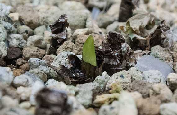 この春種子を入手して、5/27に種蒔きしたばかりの正体不明スミレが早くもツボミを付けました。発芽を確認したのが6/25だったので、僅か2ヶ月半で”大人”になったことになります。種蒔きから1年後でも十分に”早い”仕事ぶりですが、2ヶ月半というのは、最早”お口あんぐり”状態です。 ツボミ(らしきもの)の今の大きさは、米粒大といったところです。このサイズの中に、花弁やシベ類の中核機能がキッチリ収まっているかどうかは確かめ様がありませんが、葉や茎が枯れてしまうほど寒くなるのは11月に入ってからなので、時間はたっぷりあります。開花まで漕ぎ着けられるかどうか、楽しみが1つ増えました。更に付け加えると、この品は一体何者なのか、品種など一切不明のままです。花が咲けば、そうした分からなかった点も明らかになるかもしれません。