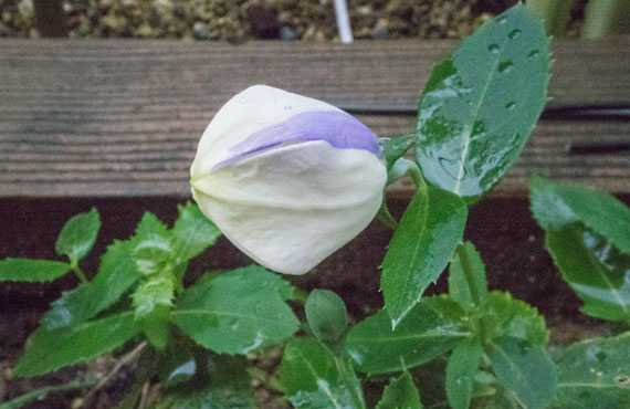 昨日取り上げたアポイギキョウの続報です。露地に一時避難した選抜から漏れたグループとして紹介しましたが、僅か1日で、実はこのグループが逸材の宝庫かもしれない、ということが分かって来ました。画像は昨日貼り付けた画像の後方に写っているツボミですが、何とこれが「絞り咲き」を演じて見せました。”選抜漏れ”などとディスった表現をしたことを詫びなくてないけません。 とは言っても、今、時期遅れで咲いている一群の中で、更に変り咲きを期待するのは酷です。今年はこのまま終わるとして、来シーズンは更なる大化けしてくれるかもしれません。いや~、次のシーズンが実に楽しみです。