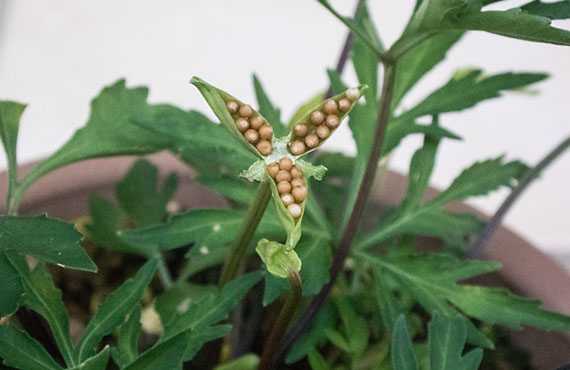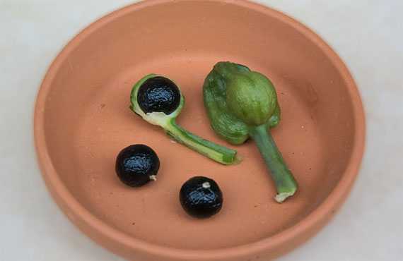 一般的にヒガンバナの仲間は遺伝子構造の制約から種子を結ばない、というのが定説となっています。この10数年、身近に植えて観察して来た限りでは、花が終って2週間もしない内に、花茎は黄変・倒伏してしまいます。これでは仮に種子を結んだとしても、成熟する時間がなく、植物の基本性能として種子を実らせる意思はハナからなさそうです。 そのリコリスの一部の品種で、花後すぐに花軸を刈り払い束ねてプチ花壇の隅に置いていたところ、水も栄養分も供給がないにも関わらず、少数ですが実が成長し、種子が黒く完熟状態まで成長するものが現れました。昨年の事です。その際は種子を採り蒔きしたのですが、発芽することはありませんでした。 そして今年、「山の根ゴールド」の花が終り大半の花軸が黄変・倒伏した後も、3本の花軸が青みを維持すると共に、種子を収容する筈の鞘が大きく膨らみ始めました。それから1ヶ月半が過ぎ、花軸の根元付近が黄変し始めたのを見て、その鞘を回収してみました。そして鞘を割って中身を取り出した様子が上の画像です。容器の直径は7㎝です。昨年のケースでは成長初期の段階で水や栄養分の供給が絶たれたのに対して、今年の種子はごく普通に養分の供給を受けながら育っています。これで種子としての基本性能、つまり発芽するという機能が働くかどうか確認する意味でタネを蒔いてみました。こちらがその様子ですが、この冬から来年の春にかけて、この種蒔きポットに大注目です。