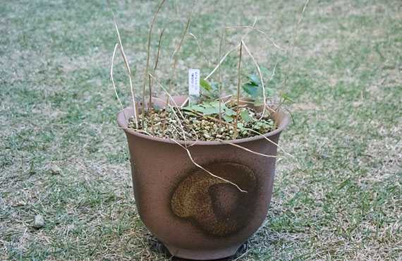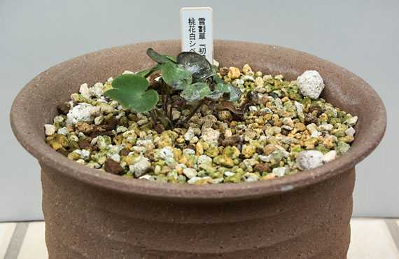 用土量1~3Lの大邸宅(ポット)を欲しがる品種の手入れが一巡し、残るは雪割草やサクラソウなどの小型のポットで慎ましく生きている品種だけになりました(一部大型ポットで団体生活させているサクラソウがありますが・・・)。そんな中で、雪割草の一番手として取り上げた「初鏡」を紹介します。 この品種、昨年の今頃は夏場の強い日射を浴びて葉焼けを来し、丸坊主状態でした。今年は梅雨入りの頃から日差しに縁のない場所に移動させていましたが、自動潅水の水量が過ぎた様で、軽度ですが根腐れを起こし葉を最盛時の半分ほどに減らしてしまいました。これを3年ぶりに用土を一新し、勢いを回復させることを目指します。 用土を排出し株を掘り上げてみると、株分けが進み2個体に分離していました。分離独立した方は完全に葉を失っていましたが、小規模ながら冬芽を用意しており、上手く行けばこちらも花を付けるかもしれません。親株の方は元の3.5号ポットに、分離独立株は新たに用意した3号ポットに、それぞれ新たな用土で植え付けました。こちらがその様子で、いずれも多くは望めませんが花も一応見られるのでは・・・などと、甘い期待を寄せています。