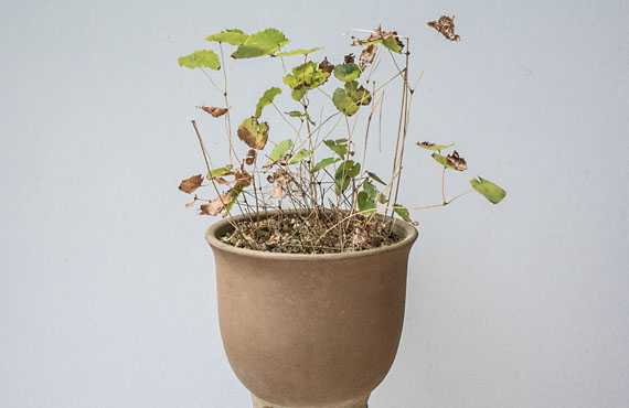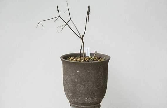 今回紹介するのはフクジュソウ「福寿海」の植え替えです。このポットは最後の植え替えから2年ですが、他と比べても用土の劣化が進んでおり、赤玉土は粉末化しかかっています。もう1年我慢させれば、用土は酷いことになりそうで、今年植え替えることにしました。 根の回り込みは起きていませんでした。2年目だから当然と言えば当然ですが、お陰で株の掘り上げは簡単でした。いつもならここでその様子を紹介する場面ですが、今回撮影せずに次のステップに進んでしまったため、実画像での紹介はパスします。冬芽は3点準備中で、昨年より1芽増えました。順調に行けば、来春は花の数は5割増となる訳で、嬉しい変化です。ポットは従来の5号深型プラ鉢から6.5号陶鉢に変えました。こちらが作業を終えた様子ですが、ポットは長年に亘って使い回して来たため、釉薬に細かいクラックが入ってしまいました。但し、ポットとしての強度には問題はなさそうです。