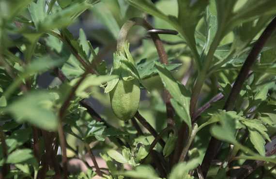 昨日は紅花ヒゴスミレの近況について、クドクドと書き並べましたが、それから半日も経たずに”事件”が起きてしまいました。昨日の投稿の中で、ピーナッツの長さ、太さを半分にした程度のツボミ2個の開花が迫っている旨書き込みましたが、そのツボミの内の1個が、開花のステップをすっ飛ばして、いきなり種子を実らせてしまいました。上の画像がその様子です。種子は既に完熟状態で、この後2時間ほどの間に半分ほどの種子がサヤのばね性で飛ばされて、どこかに消えてしまいました。 繁殖力の強い品種では開花のステップを飛ばして種子を結ぶことも珍しくありません。このスミレもそうしたカテゴリーに属します。他には、我が家の保有品の中では白花タンポポにこの傾向が見られ、寒の時期に発生したツボミが一度も開花しないまま綿帽子を広げることが珍しくありません。 そうした”珍事件”の裏で、同じ紅花ヒゴスミレで開花するものもありました。この株は春に開花し種子を実らせた子世代の個体で、シュンランのポットに寄生したものです。この個体で開花の準備が進んでいることには全く気付いていませんでしたが、ポットに水遣りをしていて花の存在気づいたものです。発芽から僅か5ヶ月で花を咲かせるという早熟ぶりです。こうした2つの事例から導き出されるのは、この品種は我が家のガーデニング環境には馴染まないほど、強い繁殖力を有している様です。