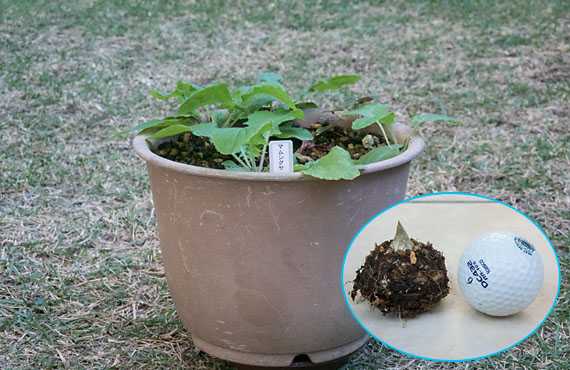 今回は雪割草手入れ4番手、紫花千重咲品をご紹介。我が家での識別のため、「無銘①」と呼んでいます。最後の植替えから2年半経ったかと思います。用土に目立った疲労はなさそうですが、少しでもいい環境を提供するために植え替えることにしました。 経年劣化もなく、株はごく簡単に掘り上げできました。根にも特段気になるところもなく、冬芽はこれまで手入れしてきた雪割草の中では一番発達していました。株には改めて手を入れる必要もないため、元の3.5号陶鉢をきれいに洗浄して、新たな用土で植え戻しました。こちらがAfter画像で、円内に冬芽の様子を添えました。この冬芽のサイズなら、来春の花付きはかなり期待できそうです。