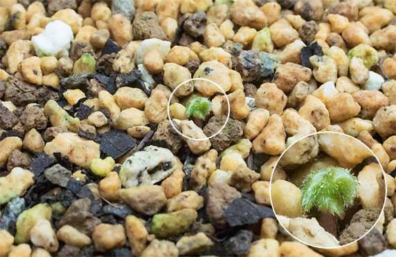 訳アリ品を承知で調達し、定植したものを屋内で保存していた赤花テシオコザクラが芽出しを始めました。衰弱気味の株だったので、少々心配だったのですが、最初の関門は取り敢えずクリアできた様子です。発見時点の新芽の大きさは、七味唐辛子に入っている”麻の実”ほどです。 現在の保管場所は洗面所の照明直下で、当面はこのままでも不都合はなかろうと思いますが、少し伸びて来ると光量は絶対的に不足することになります。それまでに日差しを浴びられる場所を探さなくてはいけないのですが、凍死回避で屋内に避難させた日本サクラソウ3点で場所は塞がっていて、割り込む余地がありません。早く暖かくなって貰いたいものですが、なかなか希望通りには運んではくれません。
