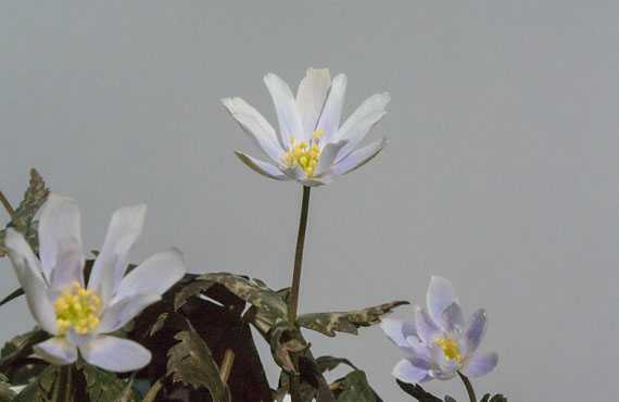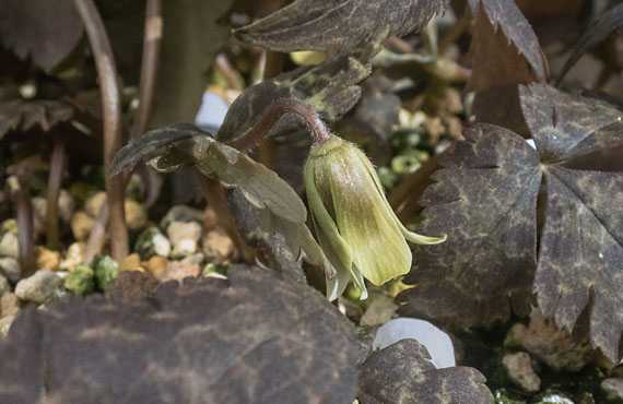ユキワリイチゲの花茎が重い腰を上げて4日経ちました。まだ腰はシャキッとは伸び切ってはいませんが、ツボミの方は少し頬の筋肉が緩んだのか半開き状態になってきました。開花も近いか・・・と思わせる光景ですが、何分にも超スロー再生の様に緩やかな進行なので、開花までにはまだ1週間以上はかかる筈です。とは云え、1ヶ月半もの長い助走期間を思うと、残る1週間や10日は秒読みの様なものです。楽しみな時期が確実に近付いています。
