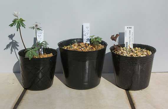 花苗リクルートの本年第2弾で姫路市郊外まで行って来ました。今回は欠員補充が主目的で、セツブンソウ2点と赤花テシオコザクラ1点を調達して来ました。セツブンソウ2点の内1点(左)は既に開花済みで、残る1点(中央)は実生の若齢株で初花まで2~3年はかかりそうです。残る赤花テシオコザクラ(右)は、株が衰弱気味で3割引きで手を打った訳あり品です。セツブンソウの定植は休眠入りの時期に実施することにし、5月頃までこのまま過ごさせることにしました。 一方、テシオコザクラは、冬芽は存在しますがまだ動き始めている様子もないことから、即攻で定植することにしました。用意したポットは3.5号陶鉢、用土は常用の鹿沼土、赤玉土混合品に裁断した腐葉土を少量混ぜたものです。こちらが植え付けを終えた様子です。しばらくは屋内に置いて、寒気の衝撃を避けることにしますが、定着が確認できれば屋外に戻すつもりです。