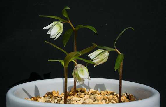 コシノコバイモの1番花が開花して13日が過ぎました。いくら「寒期の花はご長寿」とは言っても、そろそろ峠は越える筈で、この辺で全員集合の上で記念写真を撮っておこう、ということでゲットしたのが上の画像です。 それはそれとして、3個体揃って幾分頭を垂れる形の姿勢が身に付いて来ました。開花初期には天を仰ぐものが多数派でしたが、短期間で躾が身に着いたのは「お見事!! 」でした。・・・という風なオチャラけた話は横に置いて、現在の寒波が通り過ぎれば、いくつかの品種が順次開花することになる筈です。いよいよ楽しみな季節が始まります。