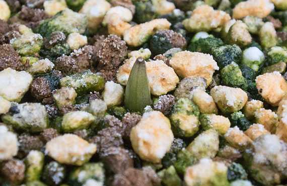 昨年8月末から8~10℃に設定した冷蔵庫で保存していたサギソウ「銀河」を、そろそろ普通の環境に戻そう、ということで、冷蔵庫から取り出しました。湿らせたミズゴケで包んでいたものを取り出すと、何と、もう芽出しが始まっているではありませんか。思い立つのが1週間も遅れたら、取り返しがつかなくなるところでした。何はともあれ、大急ぎで通常の生育環境に戻す必要があります。 用意した新居は浅型の5号陶鉢です。用土は昨年に準じてミズゴケを細断したものと赤玉土を、ほぼ半々の割合で混合したものです。8球と1粒(極小バルブ)をほぼ均等に割り付けて、1cmほど覆土して作業を終了しました。取り敢えず今暴れている寒気団が通り過ぎるまでは屋内で過ごさせ、その先は芽出しの状況や気温の動向を見て決めることにします。