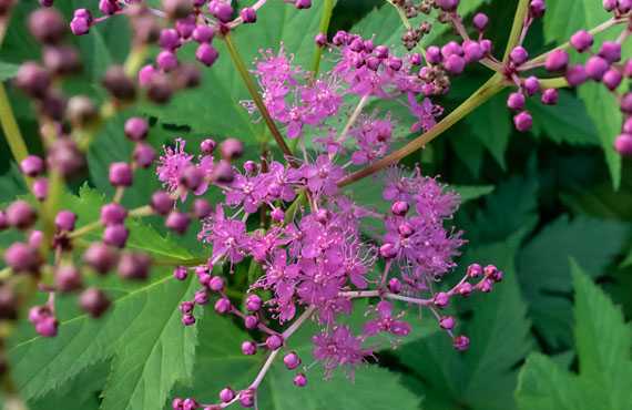 シモツケソウが予想より早く咲き始めました。昨年と比べて1日早い開花です。開花に気付いたのが正午をかなり過ぎていて現場は日影になっていたため、花の色合いに鮮やかさを欠いていますが、初日の出来栄えとしてはまあまあと言えます。今開花しているのは花序の底辺に位置する個体群ですが、徐々に上に向かって咲き進み、1週間ほどで見頃を迎えます。と言っても満開という訳ではなく、その後は散っていく花と新たに咲く花が、ほどほどにバランスが取れて、高原状の盛期を迎える様になります。 この花にとっての敵は雨で、最盛期が梅雨に重なる様な年は、見頃が短かくなったり、花の見栄えを損ねることになってしまいます。と言っても、それは低標高の人里で咲く個体群について言えることで、亜高山帯では開花時期が梅雨が明けてからになるため、こうした被害は免れます。例えば井吹山の標高1300m付近や、白山の2000から2500m付近では花期は7月末から8月初めとなり、この時期に訪れれば、霧がピンクに染まる絶景に出会えるかもしれません。