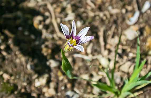 ニワゼキショウ(庭石菖)が咲き始めました。と言いながら、「随分草臥れてるじゃん!! 」と突っ込まれそうな見てくれですが、その理由は気付いたのが5時に近い夕方だったために、花弁を閉じて眠りに就く準備に入った場面でシャッターを押すことになったためです。明日1日ぐらいは寿命があると思われるので、シャキッとした画像は明日トライしてみます。因みにこの個体、今年の1番花で、昨年と比べて2日早い開花です。昨年までこの場所(親株から2m離れた位置)にニワゼキショウは認知していなかったので、飛散した種子が風に乗るなどの方法でここまでワープ(!?)して発芽したものと推定されます。現在、ニワゼキショウは我が家では総量規制の対象なので、管理人の目を盗んでこの場所に根付いた様です。油断できない、中々手ごわい相手ではあります。