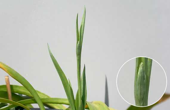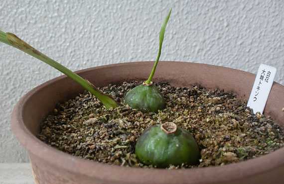 今年は作落ちしてしまった白花大輪トキソウです。低温保存中に芽出しが始まってしまい、慌てて定植したのですが、屋外に出す訳にもいかず二重ガラスの間際で1ヶ月ほどを過ごさせましたが、この間に不運なアクシデントがあった様で、手前のバルブでは新芽そのものが消滅してしまいました。時間が経てば再生するかも、ということで静観していたのですが、一向にその気配をみせていません。最悪、このまま秋を迎えて、このバルブで家系(?)を閉じることになるかもしれません。 後方の個体も葉っぱは必要以上に長く伸びてしまい、ツボミは生成せずに現在に至ってしまいました。僅かな変化としては、ただの棒状に伸びていた葉柄の基部が膨らみ始め、次の世代へのステップに入ったことが確認できます。問題は親バルブの頂上部から出て来た新芽です。この様な芽吹きは珍しくはありませんが、新世代の候補まで成長することは殆どありません。まるで絶望に向かって突き進んでいる様に見えてしまいますが、望むらくはいくつかの幸運に恵まれ、来年の活動に繋げられる養分を親から受け取れることを祈るばかりです。