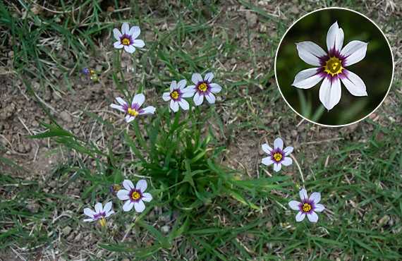ニワゼキショウの1番花開花から6日が過ぎました。僅かの間に1日の開花数は10輪に近付き「見頃」と言ってもクレームは付かないであろう規模に達しました。花の大きさは1.5cmに届くかどうかという小さな存在ですが、、眺めていて賑わいすら感じさせる状況です。 画像の株は、この場所に根付いて数年経った古参株です。今年、この株だけで200輪を超える花を咲かせることと思われます。花さえ咲かせれば、確実に実を結びます。通常は管理人が実が成熟する前に摘果して種子をバラ撒くのを阻止しているのですが、ちょっとした留守の間に種子をばら撒いてしまうこともあって、芝生の草取りの度に何点か検出、駆除しています。こんな具合で、花を眺めて悦に入っている裏で、密かな陣取り合戦が行われているのが実情です。この品種には画像の白花の他に紫花も存在するのですが、両者を揃い踏みさせると、こちらの根負けが濃厚であることから、白花1本を通しています。