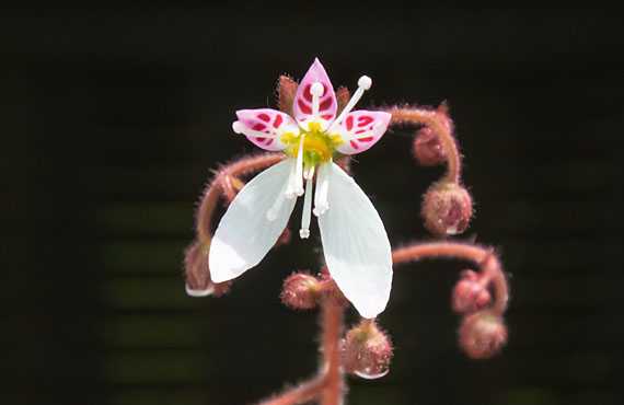 ユキノシタ(雪ノ下)が開花しました。昨年と比べて3日早い開花で、この程度なら誤差の範囲ですが、それ以上に昨日取り上げた八重咲ユキノシタと同じ理屈で、よく頑張った、と褒めてやりたい心境です。一方で今年の作況に目を向けると、画像に写っている通りツボミの量はかなり多めに付いています。この点だけに注目しても、今年は久し振りの豊作になるのでは?などと、甘めの期待を寄せています。