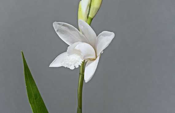 白花シラン(紫蘭)が開花しました。昨年と比べて1週間遅れの開花です。誤差の範囲・・・とは言えない幅ではありますが、この冬を考慮すると”やむなし”とせざるを得ません。 長い間、露地で放し飼い状態にしていたものを、昨年からプランタ栽培に戻しました。地中の自由な動きができなくなったストレス(!?)が影響したのか、昨年は芽を出した4芽の内、花を付けたのは1芽だけという寂しい作況でした。環境はそのままですが、今年は芽を出した5芽全てに花軸が付属しています。また、露地植えの頃には草丈が60cmを超えることも珍しくなかったものが、今年は最大でも25cm止まりに小型化しています。これで普通サイズであり、何とか「世間並み」の体型に戻った、という印象です。