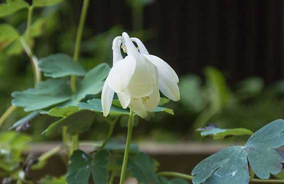 露地の白花ミヤマオダマキが開花しました。昨年と比べて実に28日も遅い開花になりました。この遅れの理由は、単にこの冬が寒かっただけでなく、春の芽吹きの季節を、蔓延ったリコリスの葉に頭上を覆われて、殆ど日差しを浴びることなく過ごしたことも原因の多くを占めていそうです。先日、そのリコリスの葉を全て刈り払ったことで、ようやく初夏の強い日差しを浴びられる様になり、改めて花を咲かせるという任務を思い出した・・・などと言っては、こじつけ過ぎと言われそうです。 それはそれとして、今年、この品種は多くの花は期待できそうにありません。オフシーズンの間に、もっと日当たりのいい場所に引越しさせることにしようと思います。
