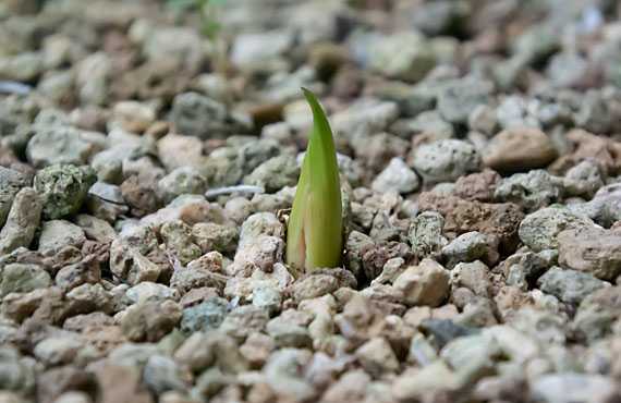 5月後半に地上部が完全い姿を消してから3ヶ月余り経った白花タンポポが芽を出しました。3ヶ月余りの休眠が明けて、この子にとっての新年度が始まったことになります。昨年と比べて1日遅い幕開け・・・ということは、事実上同時期の新年度幕開けと言えます。 この品種の年間の過ごし方をザックリ紹介すると、今から2ヶ月ほどはひたすら株の充実、つまり葉っぱの量を揃えることに専念します。10月末から11月初め頃には1番花を咲かせますが、2月末ぐらいまではポツリポツリといったペースでしか咲きません。2月末から3月中は爆咲きモードとなり、大量の花を咲かせる様になります。それも4月に入る頃には一巡し、次第に葉の量も減って、5月後半には店仕舞い、という年間スケジュールをこなして行くことになります。