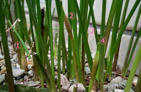 ネジバナと芝生はすこぶる相性がいい、ということで、花鉢や芝生の通路に芽生えた個体を、隅の壁際に植え替えて来ましたが、その中でも群を抜いて成績がいいのがこの個体群です。3年ほど前にこの場所に植え替えた1株が、年毎に分裂を繰り返し、今では8株に増えてしまいました。少し離れた左上の3個体は、花後に種子がこぼれて発芽した可能性も否定できませんが、半径2~3cmに8株が繁茂するという結果は驚きです。この1群の他に、1株が4株とか5株に増えたのが確認できており、局所的に過密な状況を生じています。次の花期までに過密解消目的の植え替えが必要になっています。 余談ですが、これらのネジバナを植えたエリアでは芝刈りに電動バリカンを使うことができず、凡そ20cm×1.5mの範囲は園芸バサミで手刈りしなくてはならず、これが実に厄介で骨の折れる仕事になっています。