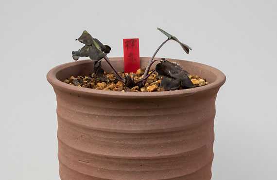 8月に入った頃から急速に精彩がなくなった雪割草の標準花・赤のポットです。梅雨の頃までは鬱蒼と(ちょっと盛り過ぎ?)茂っていた葉が、今では1枚を残して枯れてしまいました。株として生きているのか、枯死への道を辿っているのか、状況を確認してそれに応じた扱いを選ぶ必要があります。 ということで株元の葉柄の残骸をきれいに取り除いてみました。そこには小さいながら冬芽が3個準備されていました。更に株元の用土を少しだけ掘り返してみましたが、根は健康色を保持していて、全体としてこれ以上深刻な状態に陥ることはなさそうな印象でした。この様子なら春には何とか立ち直るかもしれない、ということで用土を元通り埋め戻し、健康診断は修了しました。こちらがその様子です。そろそろ暑さも緩む頃なので、近いうちに日差しを受けられる環境に移動し、リハビリに取り組ませることにします。