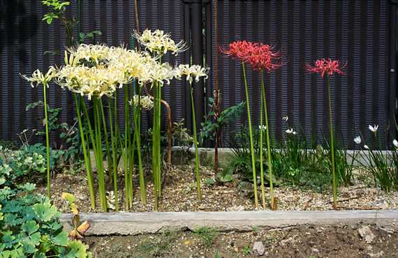 ヒガンバナが見頃を迎えました。白花の方には未開花の個体も存在しますが、これが開花する頃には、先行した個体は萎れ始めるので、総合的には今がピークと言えます。近隣の人里のヒガンバナは?、というと、既にピークを過ぎて萎れが目立つ様になっています。大雑把に言って、我が家のヒガンバナは2日から3日遅れて推移している様に感じられます。 それにしても、赤花の不作ぶりは深刻です。こちらは昨年9/22の様子ですが、赤花の作況は目を覆いたくなる様な惨状です。原因は昨年初冬に大発生したハマオモトヨトウに、葉と共に球根の成長点を食い荒らされて、以降半年余りを「葉なし」で過ごす羽目に陥ってしまいました。この結果、光合成によるスタミナチャージができなかったため、こんなことになった・・・と考えています。今年花芽を立ち上げられなかった右側の空白域では、既に葉っぱが出始めており、昨年の様なアクシデントがなければ、1年後には原状を回復できるだろうと思っています。