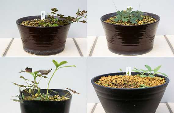 三日見ぬ間のナントヤラ・・・と言ってしまうと大袈裟に過ぎることになってしまいますが、3~4週間も目を離すとこういうことになってしまいます。そう。雑草の繁茂です。画像の上段2枚と下段左はカタバミ、そして下段右はアブラナ科、つまりダイコンの仲間と疑われる未同定の雑草です。いずれも8月の初め頃に雑草抜きを行ったものですが、1ヶ月足らずでこうなってしまいました。始末の悪いことに、カタバミは種子を結んでいて、あと1週間もすればサヤが弾けて中の種子が周囲にバラ撒かれてしまいます。 ということで、危うく雑草の子孫繁栄を見過ごしそうな場面でしたが、サヤ付きの種子ごとゴッソリ駆除することができました。結果を4点全て紹介することはできませんが、こちらが左上の品種、日本サクラソウの「濡燕」のカタバミ駆除後の様子です。秋が深まり涼しくなるまでに、最低でも1回、最悪2回はこうした雑草駆除が必要です。