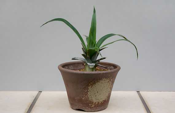 食べ残した(?)パイナップルの先端部をこのポットに植え付けたものが、発根、定着したと判定を下して、間もなく(あと1週間)2ヶ月が経過します。取り敢えず定着するまで・・・ということで割り当てたのが2.5号陶鉢(上画像)でした。新たに芽吹いた葉っぱが成長過程に入り、現状のポットでは窮屈になって来ました。で、向う1年程度は余裕をもって住人を保護できる中~大型ポットにリハウスさせることにしました。 うまい具合に空き家になっていた6号(18cm)プラ鉢を取り出し、新たな用土で移植させたのがこちらです。寒くなるまでに草丈はもう2-3cmは伸びるかもしれません。その後の寒冷期は、暖房の効いた屋内に避難させるつもりです。屋内避難中に更に2-3cmは伸びてくれれば嬉しいのですが、お楽しみはサクラの咲く頃でしょうかネ。