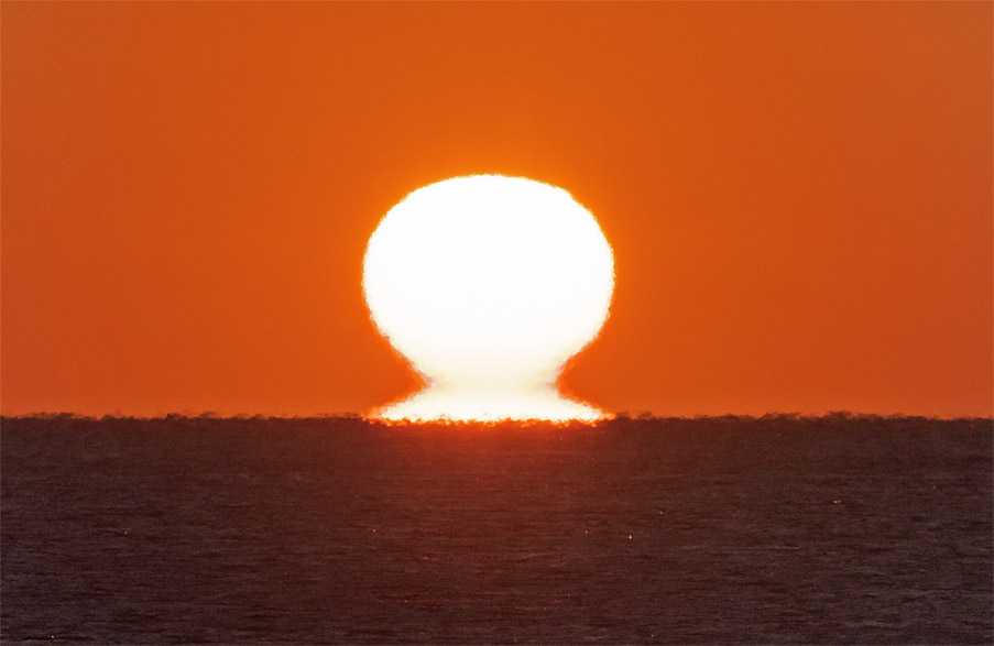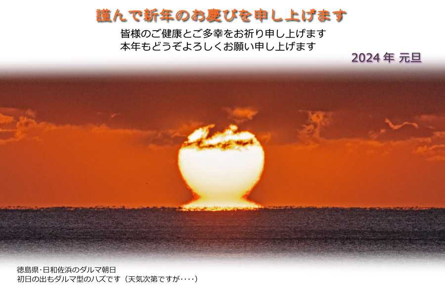 久し振りに徳島県日和佐のだるま朝日を見物に行って来ました。絶好の気象条件(天気と気温)に恵まれ、気分よく撮影して、昼前には無事に帰宅しました。 自宅を出たのは深夜、というか早朝というか、午前2時でした。同5時には最寄りの道の駅に到着しました。日の出は7時07分だったので、もっと遅く自宅を出ても良かったのですが、何かのアクシデントで到着が遅れたら、行動の全てが無意味になるので、大体この時刻の出発を心がけています。 この日、現地の気象条件は、東方海上に雲は皆無、気温は0℃スレスレ、という具合で、日の出を見る上では理想的なものでした。心配な点は路面の凍結だけです。運転席のパネルには神戸出発時から現地到着まで路面凍結の警告表示が出っ放しでしたが、ぎりぎりのところで凍結はありませんでした。という風な経緯を経てゲットした内の1枚が上の画像です。贅沢を言えば細い糸を引く様な雲がかかっていてくれたら・・・などと思うのですが、贅沢を言えば切りがありません。何はともあれ、ダルマ発生の条件は、この先どんどん悪くなります。ということで、今シーズンのだるま朝日見物は今回で終了とし、この先半月ほどは近場の夕日の方に専念することにします。