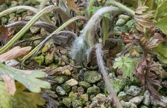 半月ほど前にいつまでも冬枯れしない洋種オキナグサの白花品を取り上げました。その洋種オキナグサは?、というと、最後に花を見たのは2019年のことでした。4年もの間、作落ちを続けていながら、絶滅するでもなく、繁茂するなど勿論ない、という中途半端にも届かない生存を維持してきました。 それが今年は九分通り花付き間違いなし・・・といっても良さそうな準備を整えています。冬芽の大きさはピーナッツを長さ、太さを半分にしたほどですが、桜が咲くころにはピーナッツ大に肥大化します。同じオキナグサの仲間で国内に分布するものは、ほぼお隣と言える範囲に置いていたものですが、まだ冬芽は土の中・・・といった状態で、外見から準備状態は視認できません。という具合で、今年は久々にオキナグサの仲間で少なくとも1品種は花が見られそうです。暖かくなる頃が待ち遠しく思えます。