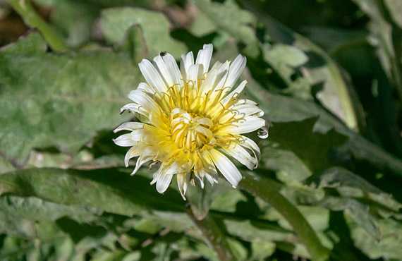 「どないでっか?」 「ボチボチでんな~」という会話がリアルに成立しそうな白花タンポポの今日この頃です。さほど多くの花が咲く訳ではありませんが、さりとて存在を忘れてしまうほど間隔が空く訳でもない、というペースで静かに存在を主張しています。 流石にこの時期の寒さは花には応えるのか、我々人間の手がかじかむように、白タンの花弁は縮んだままで、春本番に咲く花の様に綺麗に伸びきった状態は見られません。あと1ヶ月ほど経てば、花弁もシャキっとし、数もまとまる様になりますが、もう少しの間は控えめな咲き方が続くことになります。